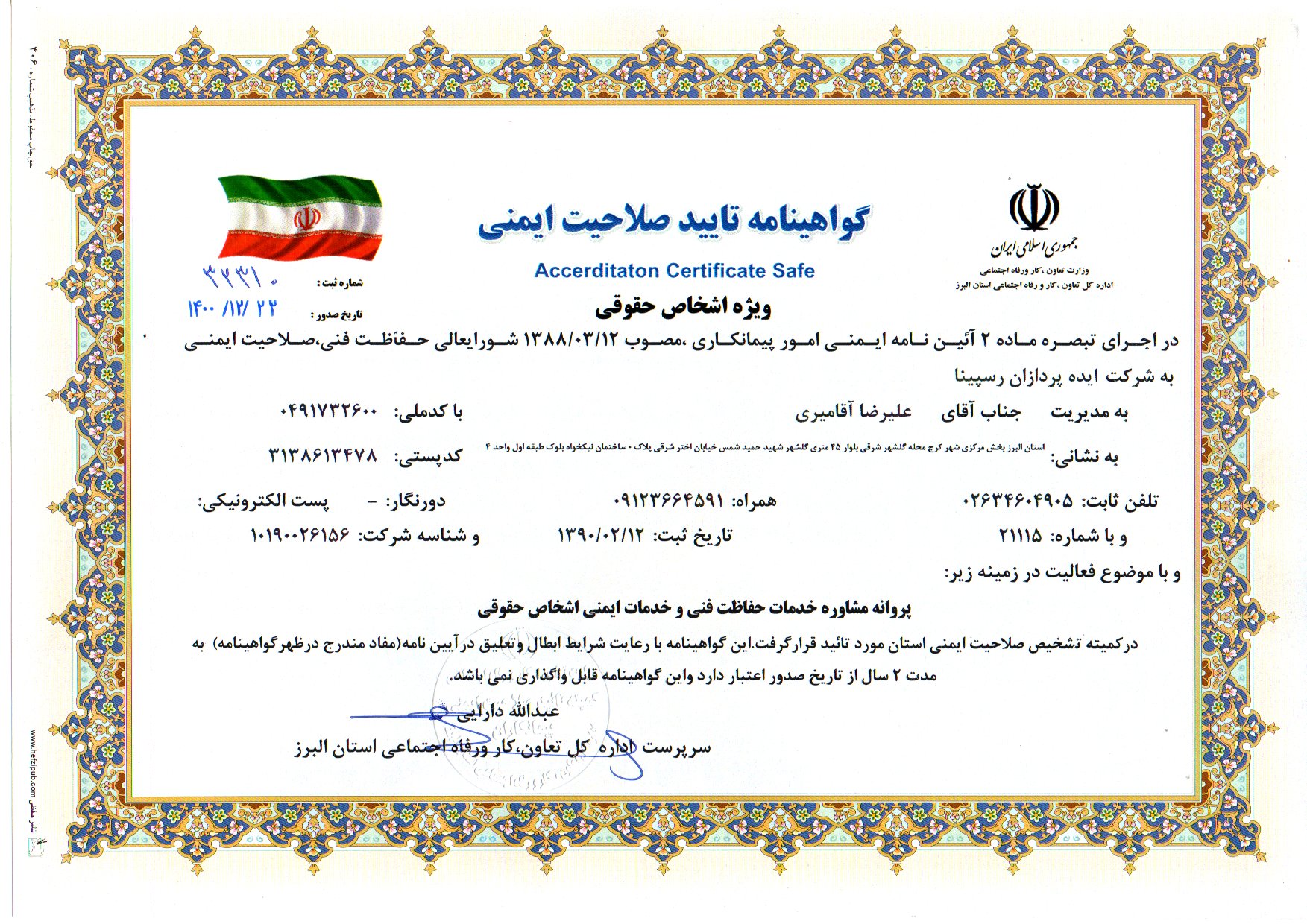 گواهینامه تایید صلاحیت ایمنی